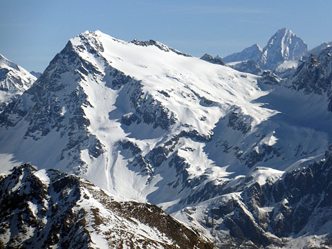 In questo massiccio molte vette di più di 4000m si raggiungono facilmente in sci. Si può fare scialpinismo perfino all'inizio dell'estate! e quasi senza portare gli sci.